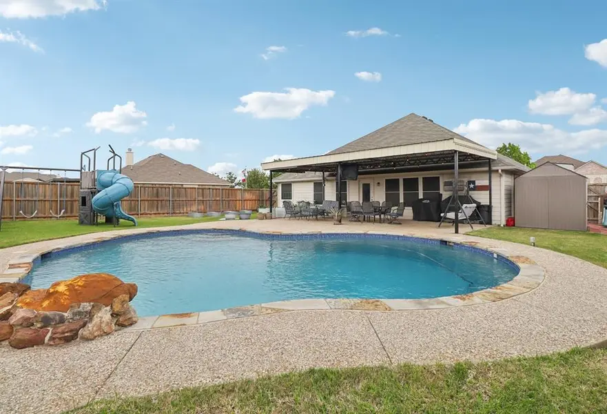 Covered Patio/Porch, Rain Gutters, Storage